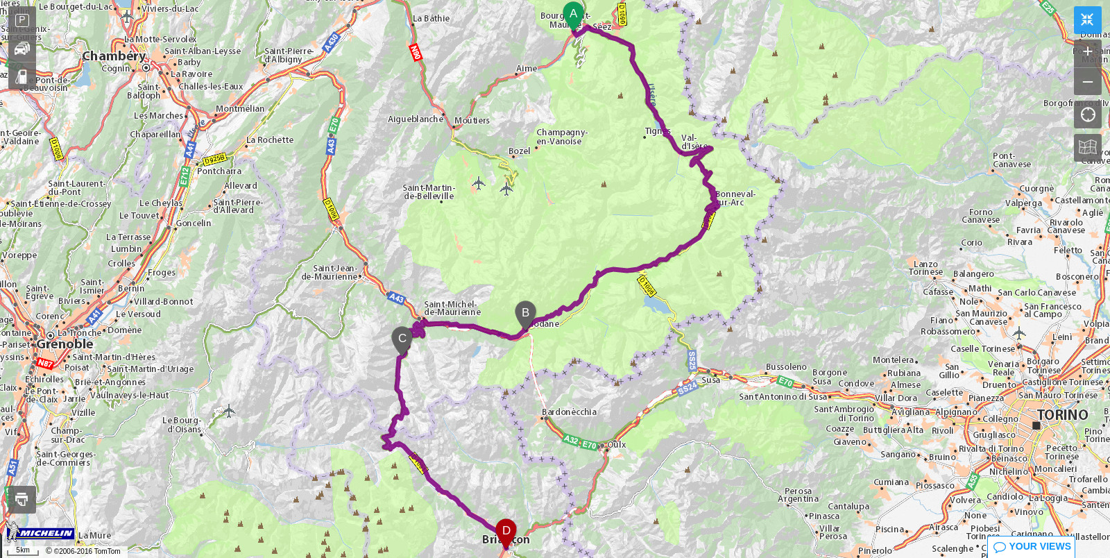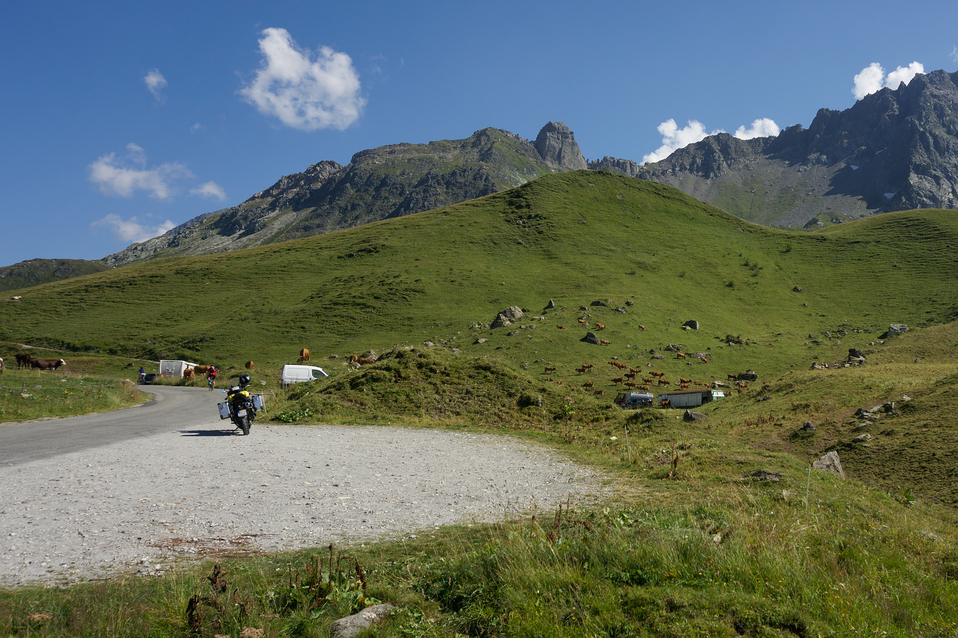 Z Bourg-Saint-Maurice jsem vyrazil směrem do známého lyžařského střediska ve Val-d’Isère. Projížděl jsem kolem přehrady na řece Isère (té přehrady, která se objevila ve filmu Taxi) a vystoupal jsem až k vrcholu průsmyku Col de l’Iseran, který je se svou nadmořskou výškou 2770 m nejvyšším alpským průsmykem.