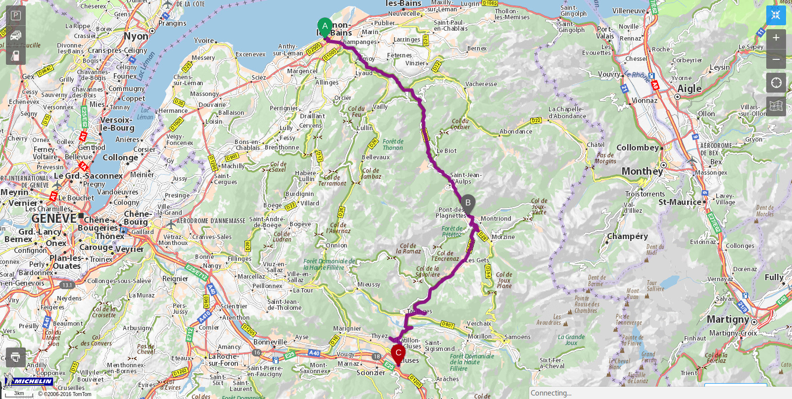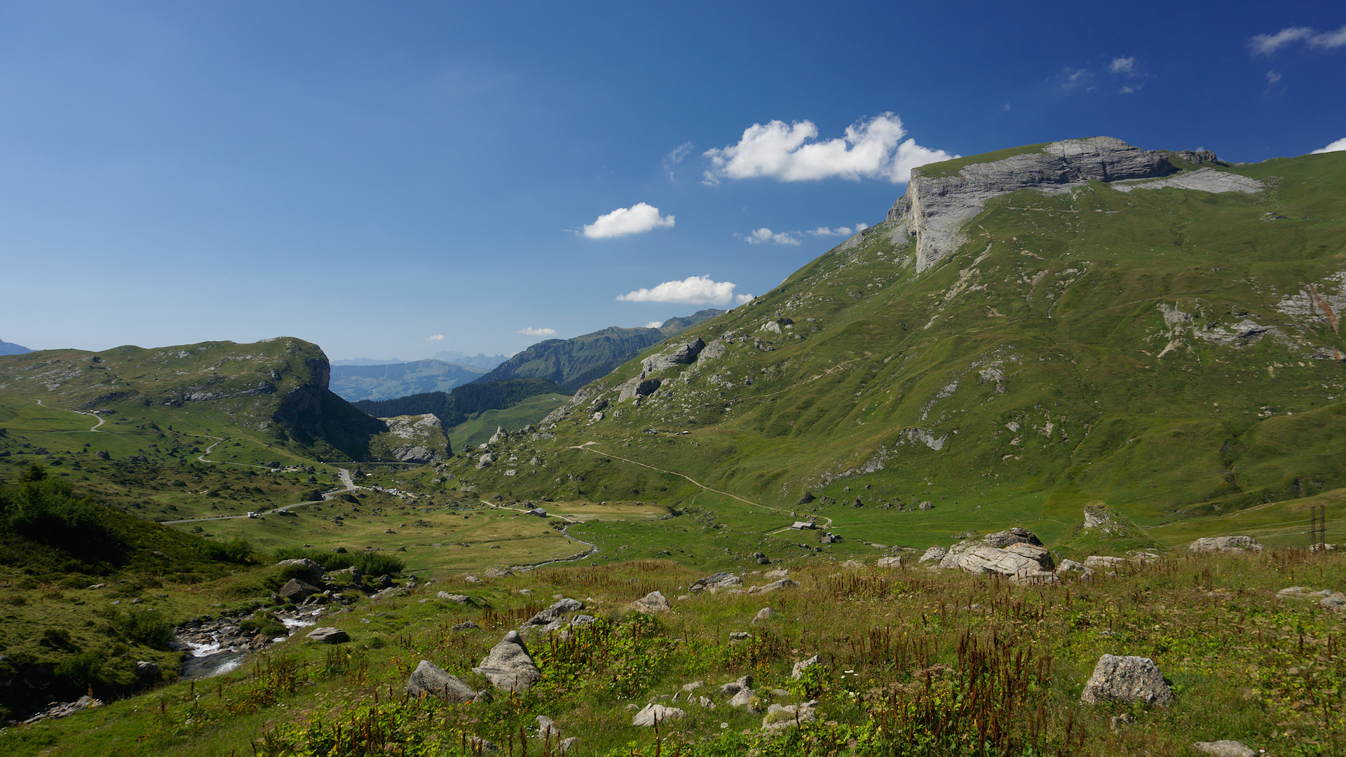 Vyrazil jsem směrem do Cluses, přes které jsem jel i předchozí den. Tentokrát jsem to ale vzal po silnici D902 — naprosto úžasné cestě plné zatáček, které se vinou krásným údolím kolem malé říčky. A jako bonus tam nebyl skoro žádný provoz. Přestože v tomto úseku ještě není žádné větší stoupání nebo klesání, tak pro mě určitě patří k těm nejlepším částem celé Route des Grandes Alpes. Užíval jsem si doslova každý kilometr!