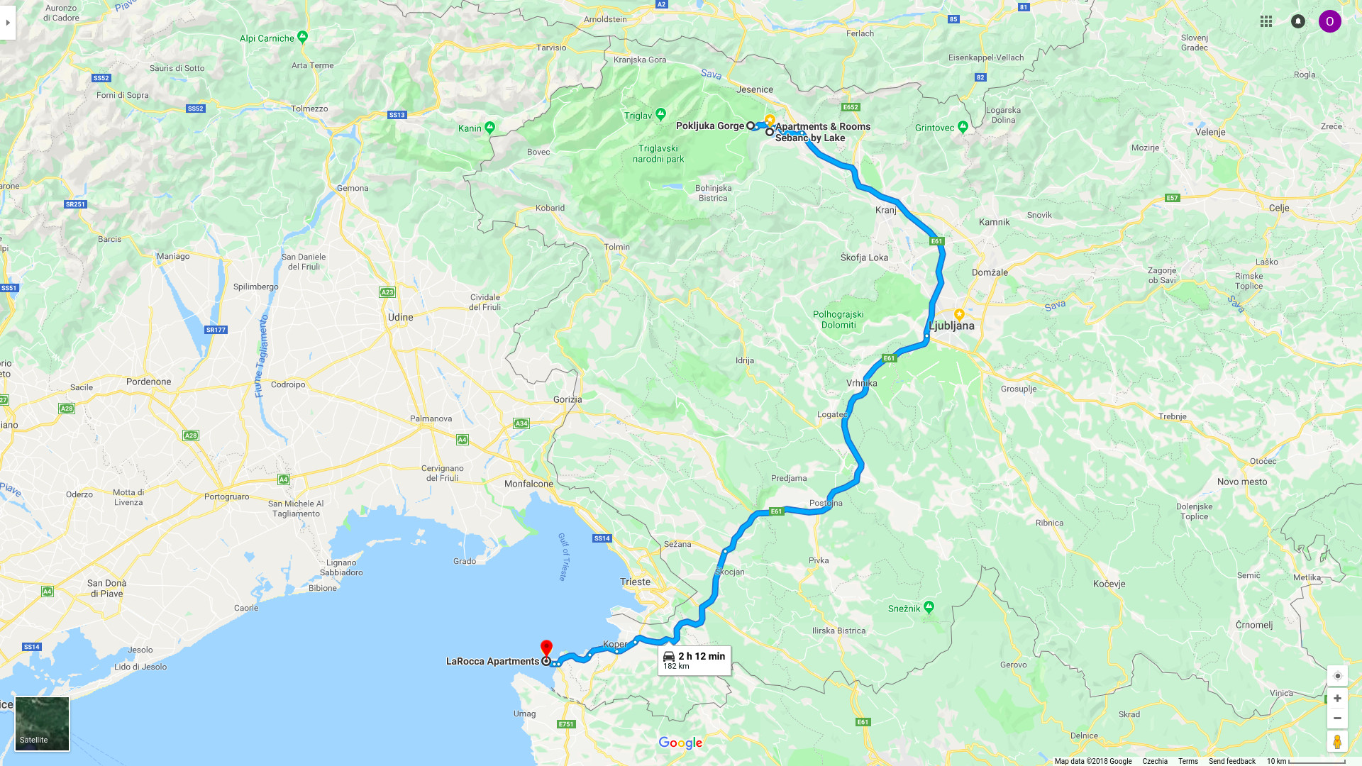 Úterý věnujeme cestě domů. S Lublaní se loučíme ráno kolem 9:30. Navigace nás informuje, že doma budeme v pět. K tomu ještě musíme připočíst hodinovou pauzu na oběd a pravidelné přestávky jako prevence proti bolesti zad a pozadí. Optimistický scénář předpokládá, že v Praze budeme kolem osmé večer.
