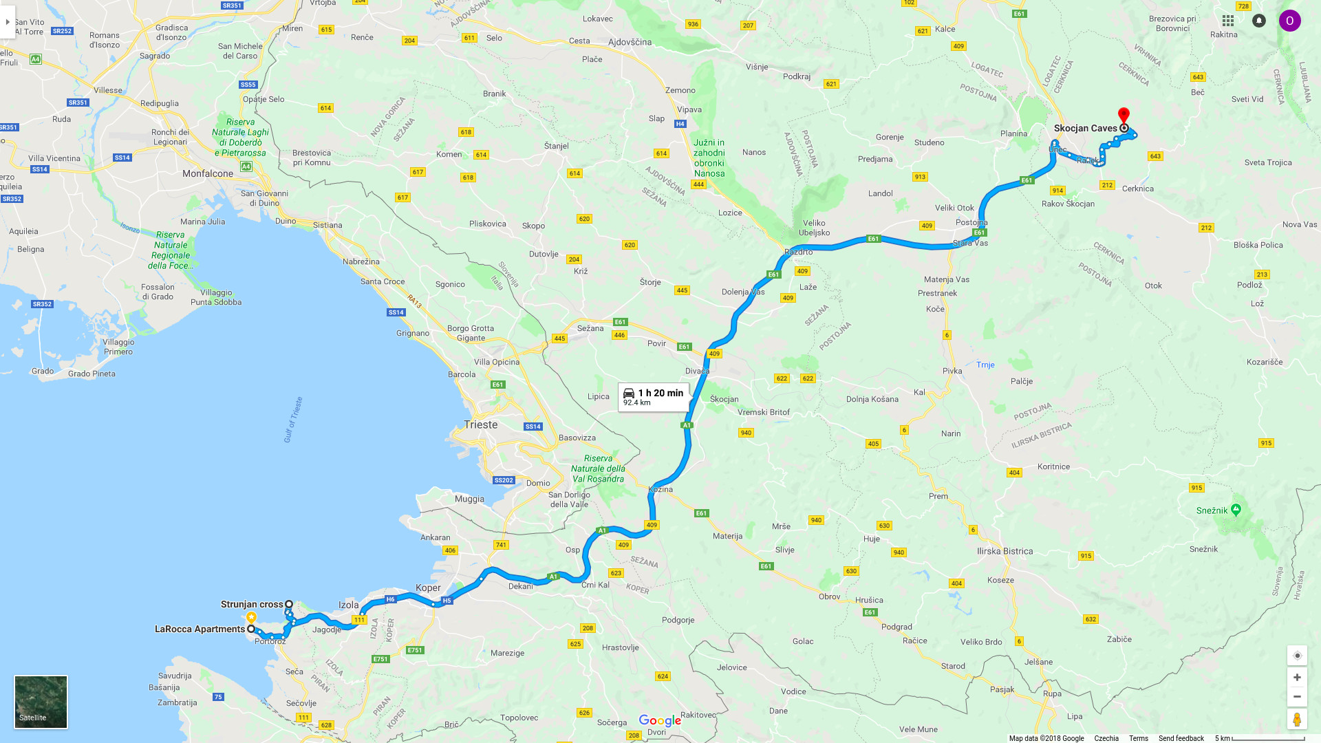 Zbývá nám ještě cesta do Piranu, kde máme rezervované další ubytování. Z Pokljušky nám to trvá zhruba dvě hodiny. Čím blíže jsme Jadranu, tím víc se do nás opírá nárazový vítr. Jedeme po dálnici a bojujeme s prudkými poryvy, které námi smýkají zleva doprava. Není mi moc do smíchu.