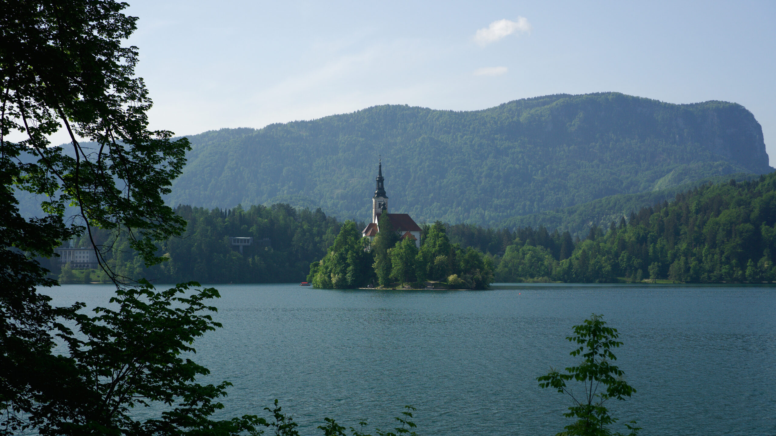 V centru městečka obdivujeme hrad a relaxujeme u romantického jezera. Uprostřed jezera se nachází malý ostrůvek s kostelem Panny Marie. Na hradě jsme odměněni úchvatným pohledem na Julské Alpy a Bledské jezero. Nic víc ke štěstí nepotřebujeme. Možná jenom pár fotek.