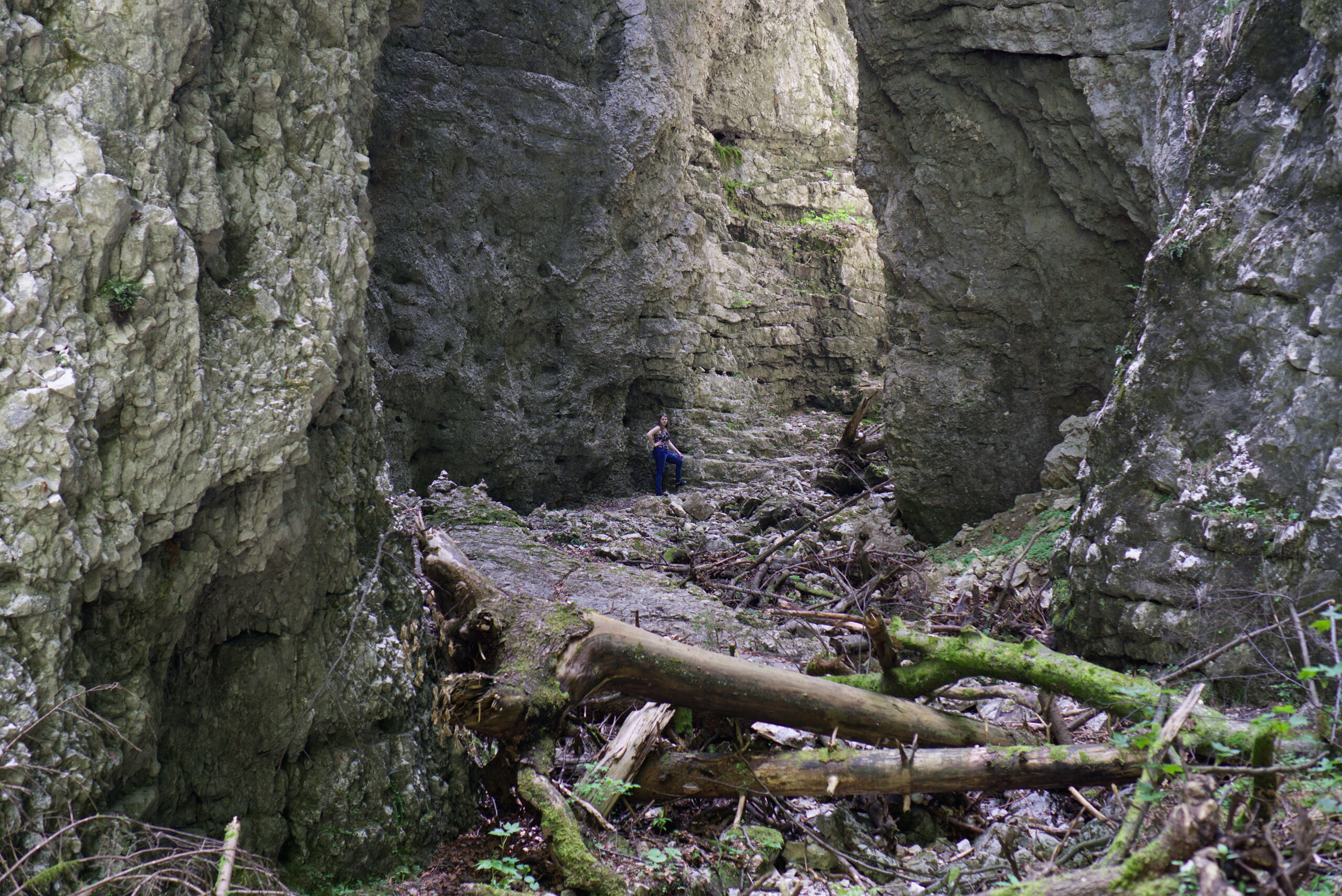 Pokljuška w porównaniu z wąwozem Vintgar jest mniej znanym miejscem. Jest dostępna za darmo, ale nie jest odpowiednia dla „niedzielnych turystów“. Jest to trudny teren, pokryty wielkimi, białymi kamieniami i powalonymi drzewami, pośród których się wije wąska, wydeptana dróżka. Przynajmniej mamy dobre buty. Z klasycznym zestawem sandały plus skarpetki można sobie tu wybić zęby. Na przejście wąwozu potrzebujemy około 2 godzin (ok. 4 km).