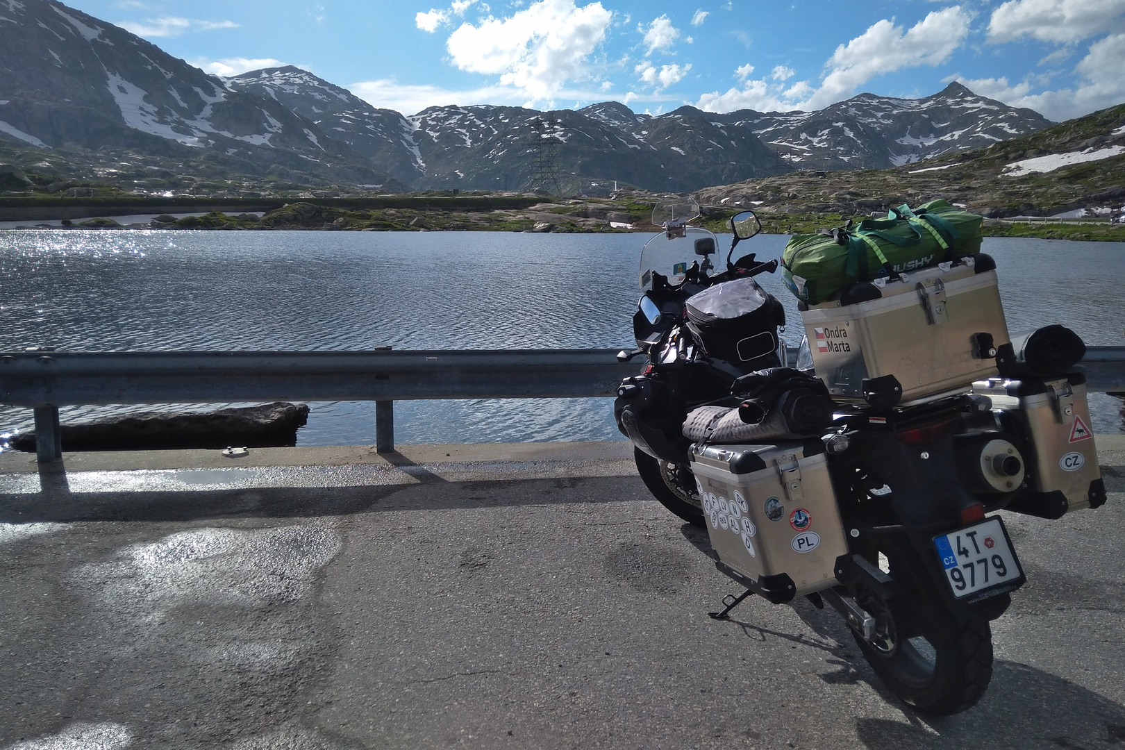 Kvalitu silnic hodnotíme velice kladně. V některých průsmycích (Albula, Furka, Klausen a San Bernardino) jsme přesto místy narazili na práce na silnici nebo horší povrch vozovky. Pokud můžete, vyhněte se Mnichovu velkým obloukem. Nám trvalo 1,5 hodiny, než jsme projeli ucpaným městem. Nemít motorku, tak tam trčíme ještě teď. 😀 V Lichtenštejnsku jsme měli dojem, že byl na všech silnicích nově položený asfalt. Ve Švýcarsku se navíc určitě vyplatí jet podle předpisů. Pokuty jsou likvidační a policajty rozhodně neukecáte. Naštěstí jsme to nemuseli řešit.